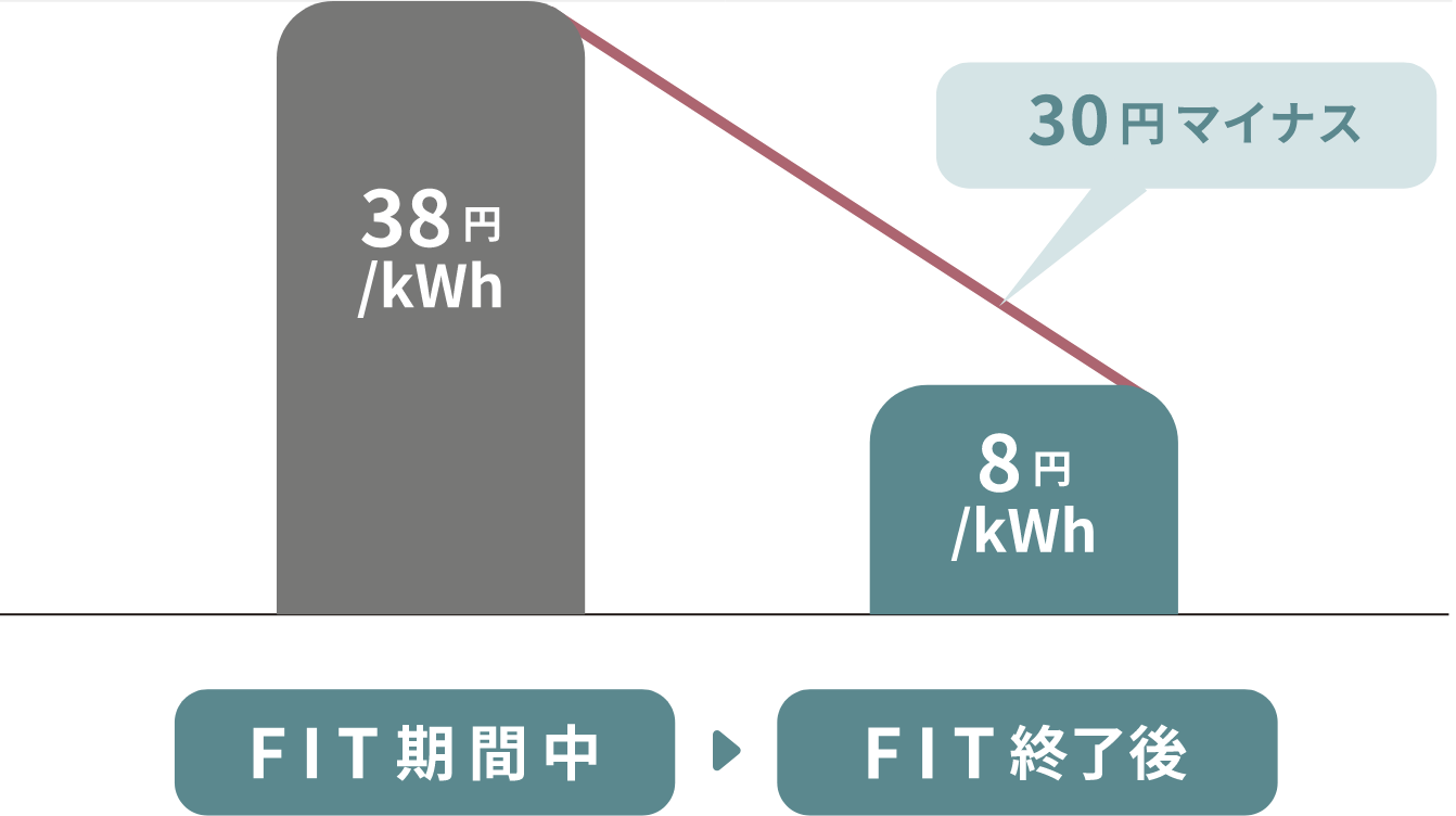 FIT制度では、太陽光発電事業者は余剰電力を電力会社に売却することができますが、買い取り期間が限られているため、期間終了後には価格が下がります。しかし、蓄電池を導入することで自家消費比率を高め、電気代の削減が持続的に可能になります。蓄電池によって太陽光発電で発生した電力を貯蔵し、期間終了後の価格下落リスクを回避することができます。