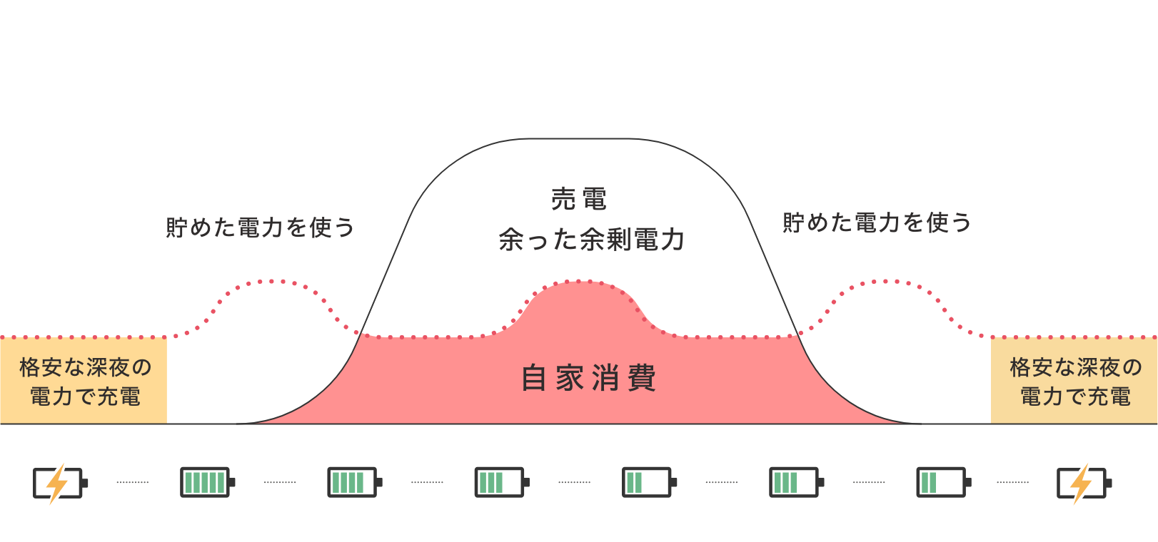 • 運用方法その1-昼間は売電を行い深夜の格安な電気を有効活用